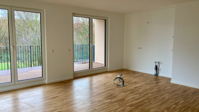 Alle Wohnungen haben eine hochwertige Innenausstattung und sind über großzügige Außenbereiche in Form von Balkonen, Terrassen oder Dachterrassen mit Blick auf das angrenzende Naherholungsgebiet ausgerichtet.