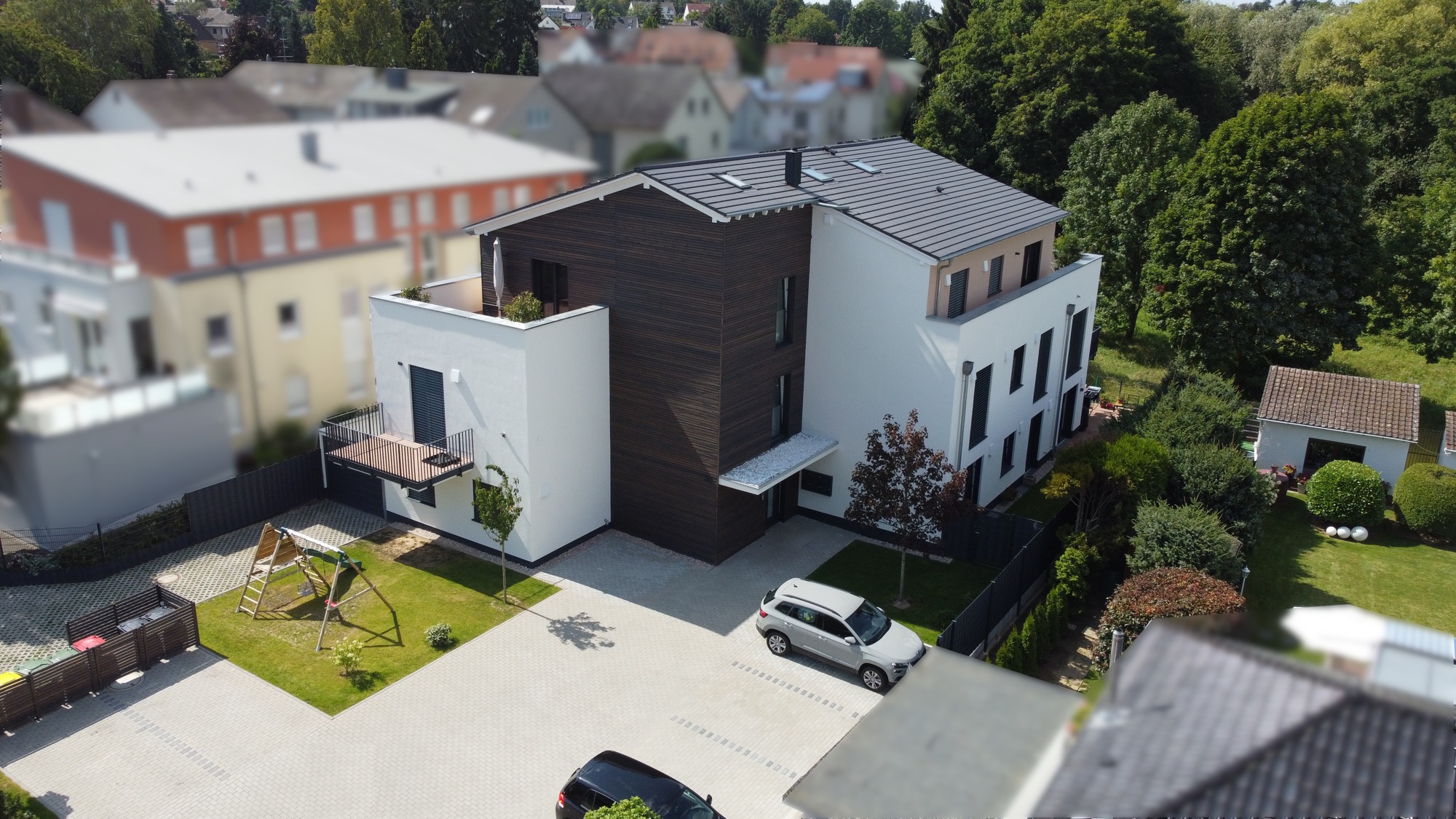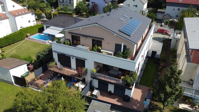 Alle Wohnungen haben eine hochwertige Innenausstattung und sind über großzügige Außenbereiche in Form von Balkonen, Terrassen oder Dachterrassen mit Blick auf das angrenzende Naherholungsgebiet ausgerichtet.